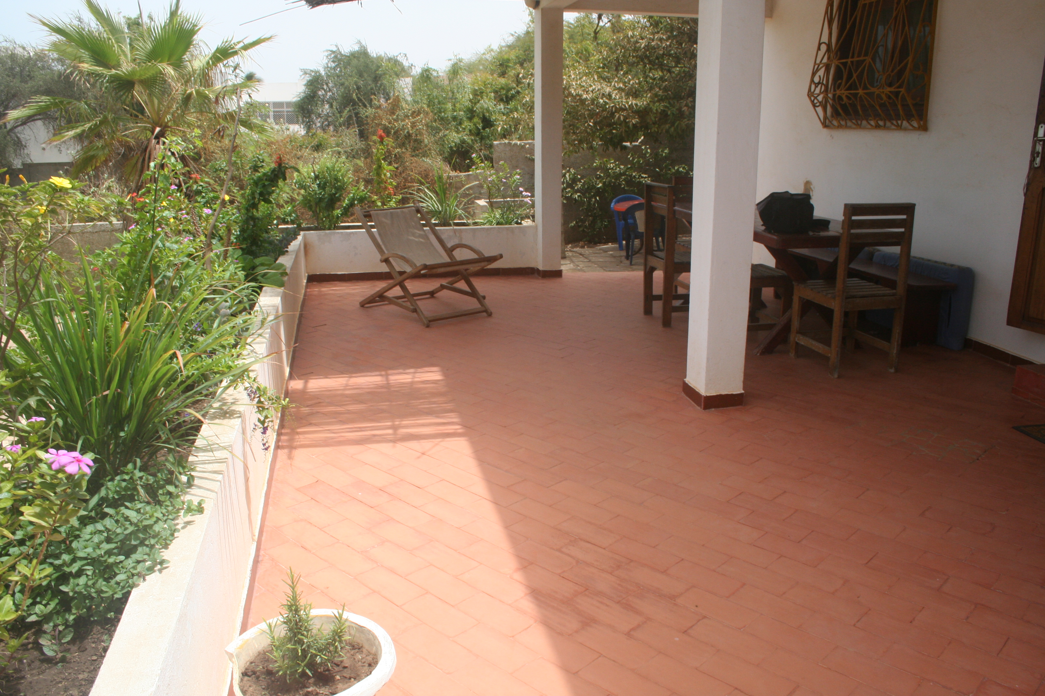 Und ich war in meinem Garten. Bei meinem letzten Mal, vor 2 Monaten hatte ich ihn ja zum Teil neu bepflanzt. Einen jungen Flamboyant, viele Blumen und auch etliche Kräuter. Ich war in Sorge, ob die Pflanzen wirklich gewachsen waren. Und wie sie sind! Schon fast gewuchert sind sie. Omar hat sie auch immer gut begossen. Ich musste schon recht stark zurück schneiden, jedenfalls die schnell wachsenden Pflanzen. Damit die anderen auch eine Chance bekommen. Und ich habe meine beiden Artemisia Annua Pflanzen im Garen gepflanzt. Ich hatte sie als ganz kleine Pflänzchen zu Beginn des Ausnahmezustandes erhalten. Da ich nicht mehr nach Somone konnte, habe ich sie ich grössere Töpfe gepflanzt, wo sie sehr gewachsen sind. Jetzt bin ich froh, dass sie endlich an ihrem Bestimmungsort sind und hoffe, dass sie kräftig wachsen.